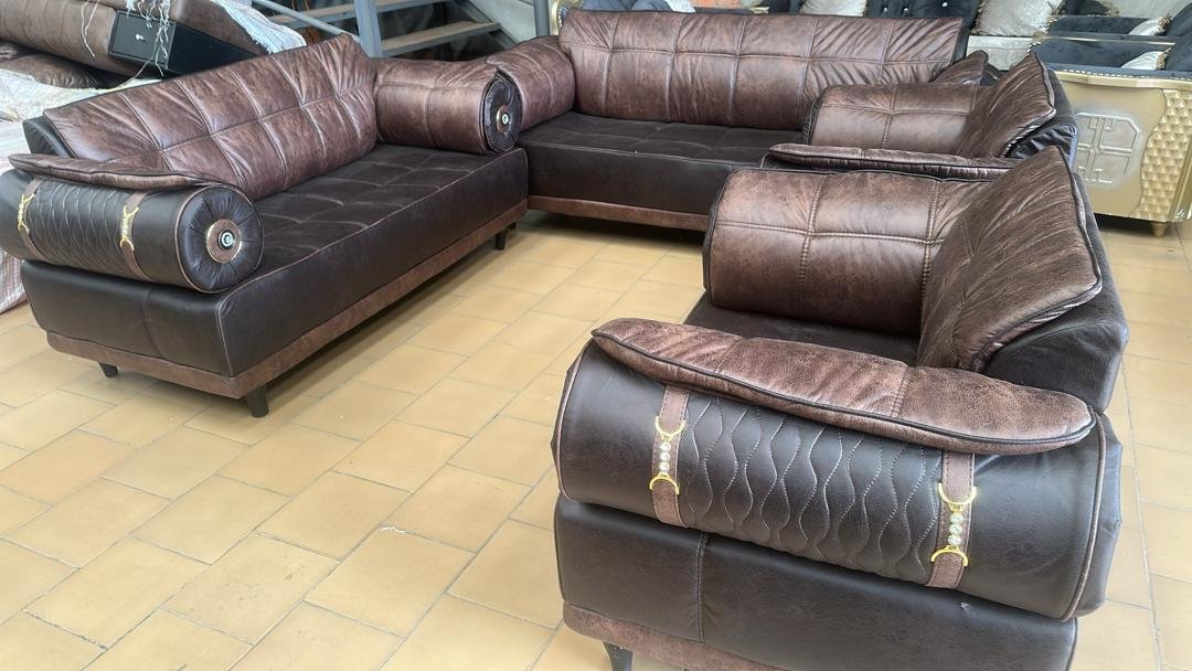 Un salon simili cuir 6 place de la haute qualité avec une très belle couleur marron noire